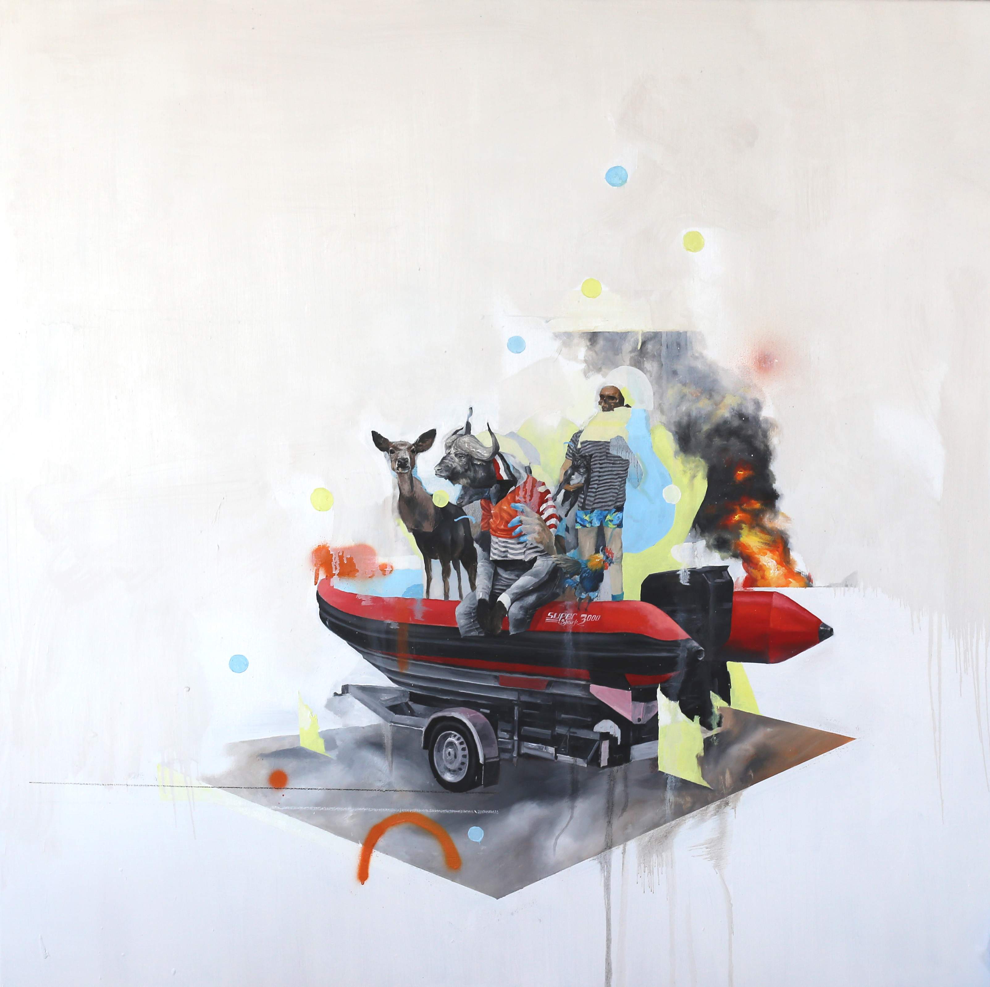 ‘American Ornithology’ at Thinkspace Gallery is an an ironic take on adjusting in a new place. Having stayed in Los Angeles for about a year and a half around the time, I felt at times unsettled, unrooted and estranged. Struggling to get used to this new environment, I created the body of work as an ornithologist of sorts. As a reference to the passion I grew up with, bird-watching, I attempted viewing the city and the people with a similar curiosity. Exploring the people as well as their environments -or biotopes- resulting in a series of heavily figure-based portraits.